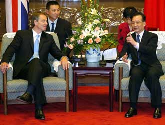 The administrative power of Hong Kong has smoothly returned to China and an all-round Sino-British partnership has been forged, the premier said. Wen also put forward four suggestions on the future development of Sino-British relations: To maintain high-level mutual visits of government officials, to expand trade and economic co-operation, to enhance cultural and educational exchanges and to resolve each other's discrepancies and differences through consultation and dialogue. Meanwhile, Wen reiterated China's stance on the issues concerning Taiwan and Tibet and exchanged views with Blair on international issues of common concern. Blair said contacts with Chinese personalities from various circles have given him a better understanding of the one-China policy, noting that the British side would adhere to the policy when dealing with relevant issues. In view of the present complicated and changeable international situation, Wen said it is necessary and urgent for China and Britain, both permanent members of the United Nations Security Council, to strengthen co-operation either for the maintenance of world peace or for economic development.