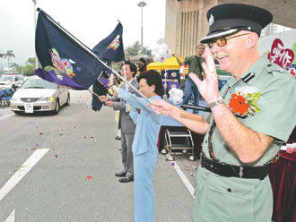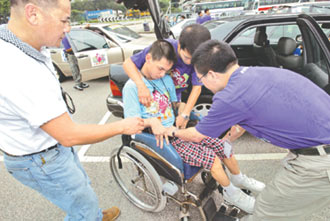 Handicapped children from Hong Kong yesterday leave on a free tour to Zhuhai, Shenzhen and Zhongshan in Guangdong Province, with the help of the Hong Kong Red Cross and the Hong Kong Police Association. [newsphoto.com.cn]