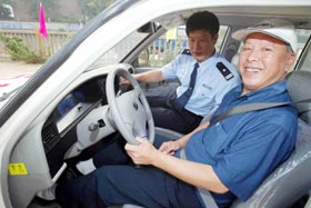 A 69-year-old man is setting for an exam for a driver's license. Under the new rules, the oldest age of a driving license holder can be 70, in stead of the previous 60.[Xinhua]