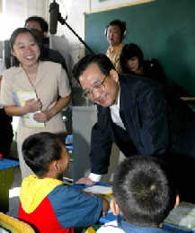 On the eve of China's 19th Teachers' Day, which falls on Sept. 10, the premier said the State Council has made the decision to set a five-year goal of letting at least 85 percent of school-aged children in China's impoverished western region have access to the nine-year compulsory education, which includes six years of primary and three years of junior school education. During his short four-point address to a group of outstanding teachers from rural areas of the country and college teachers Tuesday morning, Wen described the target as an important and arduous task, which requires the relentless efforts of the whole country. He also promised efforts to raise the social status of teachers and improve their working and living conditions, while urging themto set good examples for their students and the society as a whole. Wen explained that teachers are the key in the undertaking of education, which is significant for the long-term social and economic development of the country. By 2002, China had 11.5 million teachers across the country, according to figures released by the Ministry of Education. In the last point of his speech, the premier called on governments at all levels to do their utmost to increase investment in education and create better conditions for education. Attaching great importance to and promoting education will lay a solid foundation on which China can become "rich and powerful", the premier said. The premier also marked the eve of Teachers' Day by visiting two primary schools, a kindergarten, a middle school and a renowned professor in Beijing.