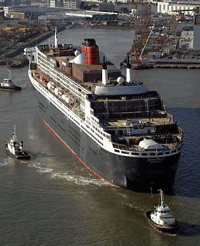 Six tugboats pulled the Queen Mary II to sea, with the ship standing as high as a 23-story building. The ship, commissioned by Carnival Corp's Cunard Line, has an onboard planetarium and art gallery and will carry about 3,000 passengers on its 15-day maiden voyage from Southampton in England to Fort Lauderdale, Florida in January. "We will push it to its maximum power to check that it can achieve 30 knots," said a spokesman for Alstom-Marine. "After that, we'll stop it brutally, and we will go in zigzags to check its stability." Unlike the steel giant, the ship's maker Alstom has been sailing through stormy waters in recent weeks. France and the EU's executive Commission agreed this week on a $3.7 billion bail-out for Alstom, averting its collapse. The troubled engineer, which also makes ultra-fast trains and gas turbines, has said its future would be focused on its energy and transport units. Management has said it hopes to take part in the consolidation of the European shipping industry, meaning it is looking for strategic tie-ups that would take off its hands the marine unit -- whose order book is thin amid a slump in tourism. About 470 shipyard employees will test the comfort of the ship's cabins during the test run. Future visitors will also be able to attend cooking courses and language classes aboard, take to a golf putting green or basketball court or relax at a health spa. Started in January 2002, work on the Queen Mary II is set to be finished in early December for the ship to be delivered to Cunard before Christmas, Alstom-Marine said. The ship is already booked for its maiden voyage, with passengers paying between $3,500 and $55,000 for the trip.
