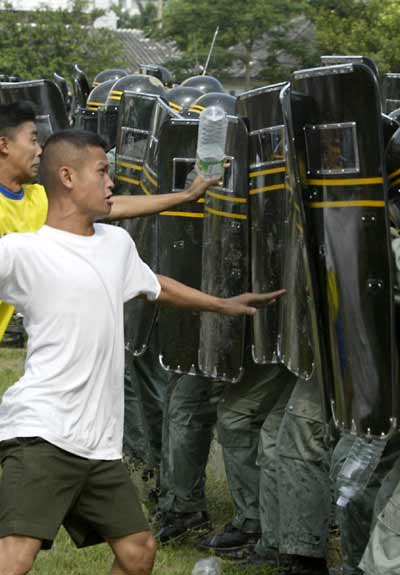 mock demonstration in Bangkok, October 13, 2003 ahead of the October 20-21