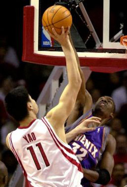 NBA: Rockets shoot past Suns 90-85 for 4th win ( 2003-11-15 14:06) (Agencies) Steve Francis had 26 points and Yao Ming had 21 points and 14 rebounds to lead the Houston Rockets to their fourth consecutive victory over the Phoenix Suns 90-85 Friday night.