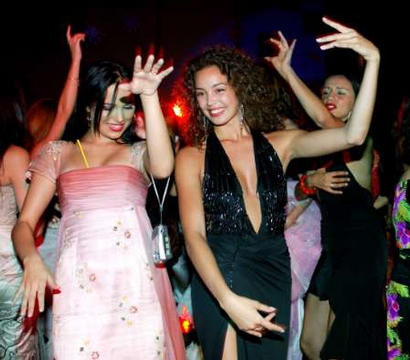 (L) dances with Miss World 2002 Azra Akin from Turkey during a 'World