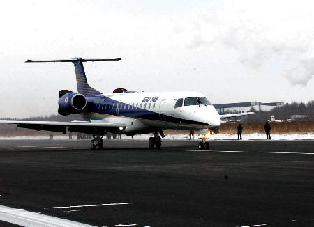 China's first domestically-made turbofan regional jet, ERJ145, made its maiden flight yesterday in Harbin, capital of Northeast China's Heilongjiang Province.