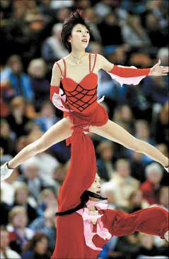 Chinese pairs take skating honours ( 2004-01-26 09:32) (Agencies) China's Pang Qing and Tong Jian won the pairs free skate on Saturday to claim the overall pairs title at the International Skating Union Four Continents Figure Skating Championships. China's Zhang Dan and Zhang Hao settled for second while Canada's Valerie Marcoux and Craig Buntin took third, both repeating their placings from the earlier short programme behind the Chinese champions.