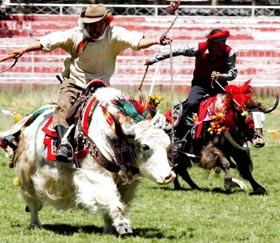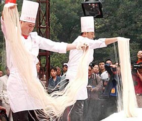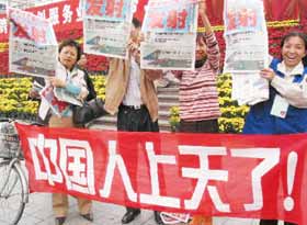 Yao Ming (first from right) of Houston Rockets, Mangke Bateer (second form right) and Melbourne Tigers captain Andrew Gaze (left) hold T-shirts along with Clara Chong, executive director of the Hong Kong Tourism Board, during a photo session at the Hong Kong Exhibition and Convention Center, August 5, 2003. Yao and Bateer are in Hong Kong to play in an exhibition game against Melbourne Tigers on August 6, 2003. [China News Service] | | | | | | | | | | | | |  | | | A Chinese family rides their tricyle in the vehicle lane in Beijing, August 5, 2003. Bicycle and tricycle are still the main transportation in Beijinghe while the number of automobiles in the capital exceeds two million. [Reuters] | | | | | | | | | | | | |  | | | Models donning costumes of different ethnic styles sashay down a catwalk during a press conference in Beijing August 5, 2003 The event was held to highlight a cultural-exchange tour to Paris this autumn to promote bilateral relations between China and France. [China News Service] | | | | | | | | | | | | |  | | | Tourists observe as a shark is dragged towards the shore at Yalong Berth Bathing Beach in Sanya, South China's Hainan Province July 27, 2003. Local fishermen said they caught the three-meter, one-ton shark by chance. Police will temporarily put the shark under protection while maritime experts decide whether it is a species subject to State protection. [newsphoto.com.cn | | | | | | | | | | | | |  | | | A Chinese worker cleaning a glass roof is silhouetted in the afternoon sun in Beijing, China, Sunday, Aug 3, 2003. Air pollution often leaves a layer of grim and dust that requires regular cleansing by groups of cleaners scaling along the walls of skyscrapers or stepping cautiously over glass roofs. [AP] | | | | | | | | | | | | |  | | | Li Cairong, a 118-year-old woman born in Foshan, South China's Guangdong Province, becomes the oldest person climbing the Great Wall, July 28, 2003. Li is now one of the oldest persons in the world. [newsphoto.com.cn] | | | | | | | | | | | | |  | | | A worker puts up a poster of the star-studded "The Matrix Reloaded" outside a cinema in Shanghai, July 20,2003. The film is proved to be a great hit in China. Pictures International reported on July 22 that it has topped US$1.012 billion at the overseas box office this year. | | | | | | | | | | | | |  | | | A hiker climbs up a dilapidated section of the Great Wall of China, north of Beijing Saturday July 12, 2003. Tourists will be banned from exploring undeveloped sections of the Great Wall, beginning August 1, to protect the ancient monument from damage. Violators face fines of between 200 Yuan (US$24) and 30,000 Yuan (US$3,600). [AP Photo] | | | | | | | | | | | | |  | | | A woman videotapes a line of flags with past Olympic logos Monday, August 4, 2003 in Beijing, as the capital city unveiled the official Olympic emblem for the 2008 Olympic Games on Sunday. [newsphoto.com.cn] | | | | | | | | | | | | |  | | | Elderly couples in Fuzhou, Fujian Province exchange gifts on Qixi, which is regarded as Valentine's Day in China, August 4, 2003. The festival, falling on the seventh evening of the seventh month of the lunar calendar, can be traced back to an ancient legend about a devoted couple - a shepherd and a weaver - meeting across the Milky Way on the evening every year. [newsphoto.com.cn] | | | | | | | | | |