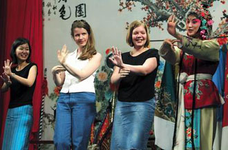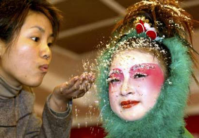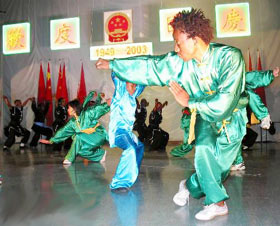| | |  | | | Two university students dance during the "Street Dance" Competition in Suzhou, a city in East China's Jiangsu Province, May 10, 2004. More than 60 contestants from the city's universities and colleges took part in the competition. [Xinhua] | | | | | | | | | | | | |  | | | Two baby tiger cubs explore their habitat and get ready for a stroll, at the Amersfoort Zoo in the Netherlands, December 8, 2003. The two white tiger cubs, Trixi and Maxi, named after Dutch Queen Beatrix and Princess Maxima, took their first stroll into their habitat on Monday after their birth on October 11, 2003. [Reuters] | | | | | | | | | | | | |  | | | Alas Ter Taylor, an Irish student at Jiao Tong University, plays Da Lingzi, a traditional Chinese game, at Century Plaza in the Nanjing Road Pedestrian Mall yesterday. Hundreds of locals and foreign expatriates took part in the "Competition of Lane Games." [eastday.com] | | | | | | | | | | | | |  | | | A local girl sketches one of Antony Gormley's 200,000 clay figures that are on display at a factory warehouse on Huaihai Road W. The English artist's "Field" project features palm-sized clay figures made from 100 tons of clay by 300 Guangzhou residents. [Xinhua] | | | | | | | | | | | | |  | | | Hong Kong movie star Jackie Chan (R) grieves over the death of canto-pop diva and actress Anita Mui, during a news conference held by Mui's friends at a hospital in Hong Kong, December 30, 2003. Hong Kong pop star Anita Mui, 40, well known in Chinese communities the world over, died on Tuesday less than four months after revealing that she had cervical cancer. [Reuters] | | | | | | | | | | | | |  | | | Three kids dress in penguin costumes at the on-going Yanqing Snow Festival held in Beijing's northern suburb. They aim to spread awareness of wild-life protection. [China Daily] | | | | | | | | | | | | |  | | | Contestants for the 53rd Miss World (news - web sites) contest wave fans during a welcoming ceremony in Xian, Shaanxi province, November 13, 2003. A total of 111 contestants arrived for a promotional tour of the ancient capital on Thursday. The finals of this year's Miss World competition will be held in the resort town of Sanya on the southern island of Hainan. [Reuters] | | | | | | | | | | | | |  | | | A Chinese make-up artist (L) blows 'snow' onto a woman's face during a Christmas show in the southern city of Guangzhou, December 23, 2003. Although Christmas is not officially celebrated in China, the holiday is becoming increasingly popular as Chinese adopt more Western ideas and festivals in the country. [Reuters] | | | | | | | | | | | | |  | | | A Santa band performs under a flashing ceiling as part of the Christmas celebration at Hong Kong's central business district December 21, 2003. [Reuters] | | | | | | | | | | | | |  | | | The San Diego Zoo unvieled the name of its 4-month old male giant panda cub Tuesday, Dec. 16, 2003, in San Diego. His name is Mei Sheng, which translates into 'Born in the USA.' The cub's name, a closely held secret, was suggested by the Zoo's Giant Panda Conservation Team and approved by the China Wildlife Conservation Association. Mei Sheng is the second giant panda cub born at the San Diego Zoo and the first in the Western Hemisphere since 1999. [AP] | | | | | | | | | | | | |  | | | A visitor checks art furniture at the Shanghai Fine Art Exhibition, which opened yesterday. The exhibition, featuring 76 works on the theme of "home," will run through January 4 at the Shanghai Art Museum. [eastday.com] | | | | | | | | | | | | |  | | | Zhang Yuhuai, a bank clerk, shows off some badges bearing the portrait of the late Chinese leader Mao Zedong, made from the 1940s to 1950s, in Tianjin City, north China, Dec. 12, 2003. Zhang held an exhibition with more than 10, 000 badges and some 1,000 portraits of Chairman Mao he collected since 1978 to commomerate the 110th birthday anniversary of the great leader. [Xinhua] | | | | | | | | | | | | |  | | | Need a hand? : Chinese models show off the latest hair-dos and beauty make-up by local designers, at a show promoting cosmetics in Beijing. [AFP] | | | | | | | | | | | | |  | | | An Actress from China's Central Ballet Troupe performs during a rehearsal for Chinese ballet "Raise the Red Lantern" in Sadler's Wells theater in London, capital of Britain Nov. 10, 2003. The ballet, directed by famous Chinese director Zhang Yimou, will run here from Nov. 11. [Xinhua] | | | | | | | | | | | | |  | | | Miss Ireland Rosanna Davison (C) celebrates with first runner-up Miss Canada Nazanin Afshin-Jam (L) and second runner-up Miss China Qi Guan after winning the Miss World 2003 title. [Reuters] | | | | | | | | | | | | |  | | | Two monkeys embrace each other for warmth in Zhengzhou Zoo, December 4, 2003. Heavy snow fell on Zhengzhou, the capital city of Central China's Henan Province. [newsphoto.com.cn] | | | | | | | | | | | | |  | | | Lucie Vachova (L) of Czech Republic and Nazanin Afshin-Jam of Canada jump up in the air on a beach in Sanya, Hainan Province, December 2, 2003. Miss Canada earlier won Miss Sport 2003, one of five individual contests being held before the final of the Miss World contest. More than 100 beauty queens from around the world will compete on Dec. 6. [Reuters] | | | | | | | | | | | | |  | | | The San Diego Zoo's male giant panda cub gets ready to take a step during an examination Tuesday, Nov. 25, 2003, at the SBC Giant Panda Research Station. Described more as a waddle by the Zoo's animal care staff, the 3-month-old cub took his first steps. Weighing 11.4 pounds, the unnamed male cub continues to develop well and has begun to develop teeth. There is an estimated 1,000 giant pandas left in the wild. The San Diego Zoo is home to four giant pandas, two females and two males. [AP] | | | | | | | | | | | | |  | | | A Hong Kong police band perform on Wangfujing Street in Beijing Octo 23, 2003 to promote the tourism exchanges between the special administrative region and Beijing. Boosting domest