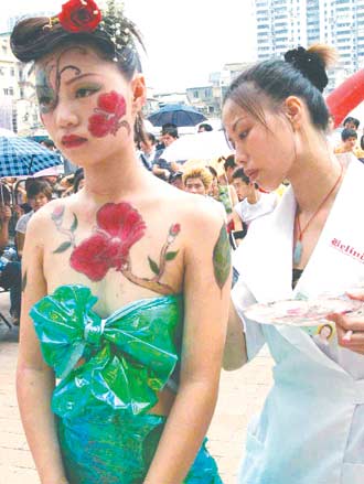 | | | | | | | | | | | | |  | | | Police dogs wait for orders from their trainers during a drill in Beijing's Xicheng District yesterday. | | | | | | | | | | | | |  | | | A young woman wear shorts yesterday in Hong Kong where the temperature hit 33 degrees centigrade. [Newsphoto.com] | | | | | | | | | | | | |  | | | A woman in Guangzhou August 7,2003,gets her body painted with colourful flower tattoos, a trend among youngsters nowadays. [China News Service] | | | | | | | | | | | | |  | | | The Hong Kong Comics Festival, the summer carnival for children involving comics, toys and e-games, drew large crowds at the Hong Kong Convention and Exhibition Centre, August 6, 2003. Programmes include comics-character imitation contests, exhibitions, autograph sessions by creators and a cartoonists' corner. [China Daily] | | | | | | | | | | | | |  | | | Chinese girls read comic books at an exhibition of cartoons and animation in Shanghai, August 2, 2003. Tens of thousands of artists from Chinese mainland, Hong Kong, Taiwan and Japan took part in the exhibition. [newsphoto.com.cn] | | | | | | | | | | | | |  | | | A young couple walk past a wall with pictures of deceased Chinese generals on the outskirts of Beijing, August 6, 2003. The picture wall is part of an effort to increase the public's military awareness. More than 20 million Chinese students receive military education and training in about 13,000 military camps around the country every year. [Reuters] | | | | | | | | | | | | |  | | |