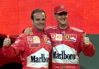 Schumacher, who referred to Ferrari as his family and even for once spoke in Italian - albeit scripted, did have one little jibe at Barrichello when he pointed out that of the three crashes in testing two had been when the Brazilian had been at the wheel although he admitted driver error was to blame for his prang.
