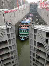 The gateway, an essential part of the gigantic Three Gorges Project, will enable vessels with a maximum capacity of 10,000 tons to pass and navigate upstream to Southwest China's Chongqing Municipality.