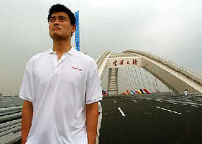 NBA star Yao Ming of Houston Rockets is seen on the opening ceremony of 3,900-metre Lupu Bridge in Shanghai, Saturday, June 28. [Xinhua]