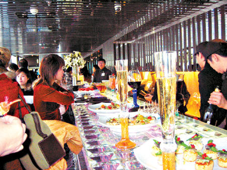 Crystal Palace TMSK Caf (), which opened last week on Chang'an Avenue, just next to Parksons Shopping Mall, is a marriage of the art of liuli (glazed glass) and international culinary arts.