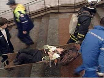 an injured person from the Avtozovodskaya metro station in Moscow,