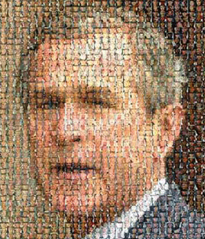 Geroge W. Bush mosaic made of dead soldier photoes An American artist has created a mosaic of US President George W. Bush's image.