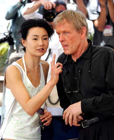 American actor Nick Nolte , left, and Chinese actress Maggie Cheung , right, pose during a photocall for their film "Clean" shown in competition at the 57th International Film Festival in Cannes, southern France, Friday, May 21, 2004. [Xinhua]