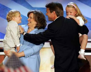 Edwards is a first-term North Carolina senator and former trial lawyer who began the presidential campaign as a dark horse candidate but who caught fire in the Iowa caucuses and earned his spot on the ticket by his performance on the campaign trail. Adhering to the night's theme of security and strength, Edwards called Kerry "decisive" and "strong" and asked, "Is this not what we need in a commander in chief?" Edwards challenged Republican criticism of Kerry as someone who does not share the values of most Americans. "When a man volunteers to serve his country . . . and puts his life on the line for others, that's a man who represents real American values," he said. "This is a man who is prepared to keep the American people safe and to make America stronger at home and respected in the world." Recounting his own rise from humble roots in small-town North Carolina, Edwards, 51, said the core of the Democratic campaign "is to make sure all Americans have exactly the same kind of opportunities that I had -- no matter where you live, no matter who your family is, no matter what the color of your skin is, this is the America we believe in." He produced a thunderous ovation when he said the nation must confront the effects of racism and that Democrats should never shrink from discussing the issue. "This is not an African American issue. This is not a Latino issue. This is not an Asian American issue," he said. "This is an American issue. It's about who we are, what our values are, what kind of country we live in." Edwards promised that he and Kerry would create more jobs, stop tax breaks