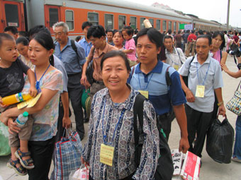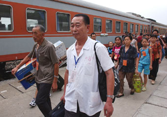 A total of 401 immigrants from the site of the Three Gorges Dam in Chongqing arrive at Jinan, Eastern Shandong Province, Thursday by train. Shandong Province has built 91 houses for the immigrants and has allotted them the same amount of arable land as local farmers. The relocation of residents from the dam site to other places within Chongqing will continue.