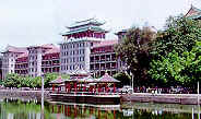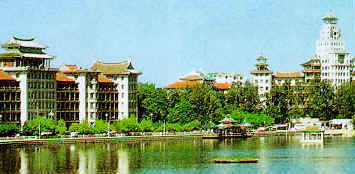 Drangon Boat Pond, 800 meters long and 300 meters wide. Around it are seven