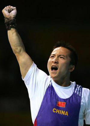Chinese hercules Shi Zhiyong won the men's weightlifting 62kg gold medal with a world record weight of 325kgs at the 28th Olympic Games Monday evening. Shi Zhiyong snatched 152.5kg and jerked 172.5kg to take the title. His compatriot Le Maosheng, world record holder in the jerk at 182.5kg, was second at 312.5kg while Leonidas Sampanis of Greece finished third at the same weight. Shi has brought China its 9th gold in the 28th Olympic Games so far. |