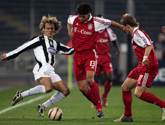 After a good start by Juventus which gave the bianconeri two good scoring opportunities in the first 15 minutes with Ibrahimovic and Del Piero, it was Bayern who slowly started increasing their play and controlling the midfield. The German side seemed fresher even though they were unable to create many scoring chances. In fact Magath’s side had just one real chance throughout the first half, but it was definitely the most dangerous one of the whole half. Ballack sent a long ball forward which went over Thuram and only the providential interventions, first of Buffon and then of Zebina, stopped Makaay from putting Bayern surprisingly ahead. From then on, Bayern increased their confidence and tried to control the match with their midfield while Juventus tried to use fast accelerations to get past, unsuccessfully, the German defence.