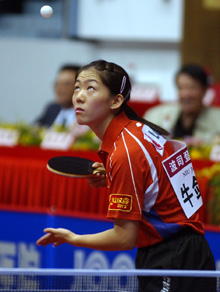 | World No 3 Niu Jianfeng serving against