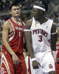 Tracy McGrady and Yao Ming, playing their first regular-season game