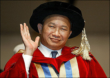 He was decked out in the university's gold silk and red velvet gown for the occasion.