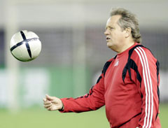 | Arie Haan, the Dutch coach of the Chinese national soccer team during a