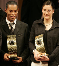 Germany's Birgit Prinz won the women's award, ahead of Mia Hamm and