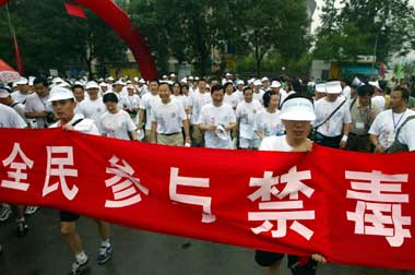 More than 10,000 people join to walk to promote war against drugs on the International Anti-drug Day in Beijing June 26, 2005. [newsphoto]