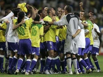 Kaka and Ronaldinho also scored for the defending World Cup champions, who played the tournament without top forward Ronaldo, taking a break following his Spanish League season with Real Madrid, and other stars such as Roberto Carlos and Cafu. "It's wonderful for Brazil to have so many talented forwards," Brazil coach Carlos Alberto Parreira said. "We have many good players, and I don't think other teams have so many, so I think that it's a good problem. We have good replacements. It's wonderful." Adriano, who led the tournament with five goals, scored in the 11th minute when collected a ball from Cicinho, turned inside between two defenders, jumped over a third and beat goalkeeper German Lux with a powerful left-footed shot from the edge of the penalty. Adriano got another goal in the 63rd when he outjumped Gabriel Heinze and headed in Cicinho's cross from six yards. Kaka scored from 20 yards in the 16th minute off a short pass from Robinho, and Ronaldinho headed Cicinho's cross into the goal in the 47th. Robinho nearly scored in the 57th minute, hitting the crossbar. "We put on a great show," Ronaldinho said. "It was our best performance of the competition." Pablo Aimar got Argentina's goal in the 65th minute. "Despite the defeat, there are many positive aspects that Argentina hope to take from the Confederations Cup experience," Argentina coach Jose Pekerman said. Brazil, a five-time World Cup champion, also won this tournament in 1997. Even though the roof was closed at the newly built Waldstadion, one of the sites of next year's World Cup, rain from a thunderstorm leaked onto the field. In the third-place game at Leipzig, Michael Ballack scored on a free kick seven minutes into overtime to lead Germany over Mexico 4-3. Lukas Podolski, Bastian Schweinsteiger and Robert Huth also scored for Germany, which played a man short after Mike Hanke was ejected in the 54th minute. Jared Borgetti scored twice and Jose Fonseca once for Mexico, which tied the game three times after trailing. "We had tremendous performances in this tournament," Mexico's coach Ricardo La Volpe said. "We played very well and we played against big teams and we always believed in ourselves."