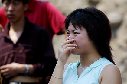 A woman cries after getting the news that one of her relatives was trapped in the coal mine. [newsphoto]