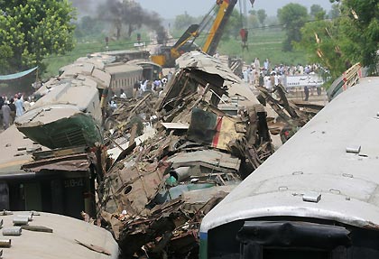 crash near Ghotki, 430 km (267 miles) northeast of Karachi, July 13, 2005.
