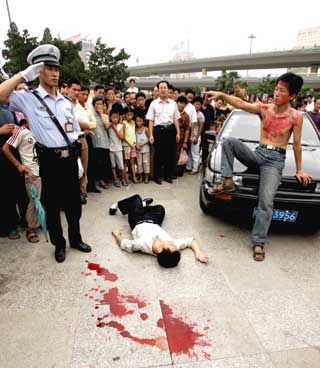drunk driving in a park in Zhengzhou, Henan Province July 17, 2005. The
