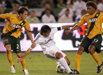 Los Angeles Galaxy's Todd Dunivant (L) and Pando Ramirez during the second half