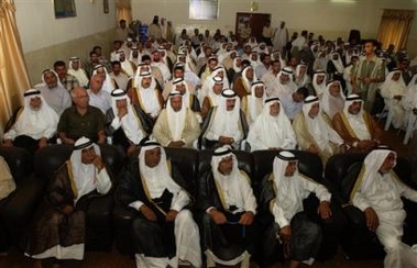 Tribal leaders from Iraq's outlying provinces listen to Sunni leaders of the Iraqi Islamic Party during a special meeting at the party headquarters, Tuesday, July 19, 2005, in Baghdad, Iraq. The meeting was aimed to mobilize the people of the provinces to participate in the political processes of the upcoming elections and called for national unity. [AP] Mijbil Issa was gunned down, along with two bodyguards, in the Karradah area of Baghdad, according to Mohammed Abed-Rabbou, a Sunni member of the drafting committee. Issa was among 15 Sunnis named last month to a committee charged with drafting a new constitution by Aug. 15. The Sunnis were added in an attempt to reach out to the religious community that provides the heart of the insurgency. However, two Sunni committee members had already quit because of threats from the insurgents who oppose the U.S.-backed, Shiite dominated government. The attack occurred as the committee drafting the constitution was holding a meeting at Baghdad's Convention Center on the edge of the heavily fortified Green Zone, home to the U.S. Embassy and Iraqi government offices. The meeting was immediately adjourned when the head of the commission Humam Hammoudi got the news, Kurdish member Mahmoud Othman said. In other violence, gunmen ambushed a bus carrying Iraqi workers to a U.S. air base near Baqouba, killing 13. Assailants in two cars attacked the minibus on its way to al-Faris air base, said Police Col. Mahdi Saleh from Khalis. Baqouba is 35 miles northeast of Baghdad. Another police official, who declined to give his name, said 10 workers were killed along with three civilians when the bus slammed into a nearby car. Before Issa's slaying, President Jalal Talabani said good progress being made on the constitution, although there are some "Arab brothers" who "have some reservations that are being taken into consideration." "If we can reach an agreement with them, I believe the constitution can be ready by the end of the month," he said. Talabani, a Kurd, did not identify the critics but he was clearly referring to Sunni Arabs who want a strong statement affirming Iraq's Arab identity and who oppose some definitions of federalism supported by the Kurds and some Shiite Muslims. The Iraqi parliament has until Aug. 15 to adopt a draft constitution, which will be put to a nationwide referendum by mid-October. If approved, it will provide the basis for a new election in December. Former Prime Minister Ayad Allawi, a secular Shiite, said he supported using the interim constitution, approved before Iraq regained sovereignty from the U.S.-led occupation authority. Some Shiites oppose the interim charter's limitations on the role of Muslim law as the basis of the legal code. Some Sunnis oppose autonomy guarantees given to the Kurds as a threat to national unity. "Concerning the constitution, we are in agreement with the national and Kurdish forces that the interim constitution be the basis for the Iraqi constitution," Allawi said. "I believe that will allow Iraq to have the constitution. As soon as the referendum on it is finished, Iraq will have stability," he said. Violence has steadily escalated in Iraq since Prime Minister Ibrahim al-Jaafari announced his Shiite-dominated government in April. Most of the insurgents are Sunni Arabs, who enjoyed considerable prestige in Iraq during the rule of Saddam Hussein. On Monday, gunmen killed at least 24 police, soldiers and government workers in Iraq in a series of small-scale ambushes and shootings. A new security offensive in Baghdad has captured about 50 suspected insurgents, including two Syrians, in its first few days, an Iraqi general told the Associated Press on Monday. Speaking under condition of anonymity for security reasons, he said Operation Thunder began last week on the west side of the Tigris River, which divides the city. On Tuesday, Iraqi National Assembly speaker Hajim al-Hasani expressed his concern regarding the spike in terrorist attacks but also cautioned that recent calls to form militias in cities could prove problematic. Al-Hasani said the presence of militias on Iraqi streets would represent a big challenge to the government and its attempts to impose security. Such a move could "open the door for the interference of regional and international forces in Iraq's affairs," he warned. Instead, he called upon the government to speed up the process of building up security and the Iraqi army. Elsewhere, a roadside bomb hit a police patrol Tuesday in northern Kirkuk, killing a police officer and a civilian, according to police Brig. Sarad Qadir.