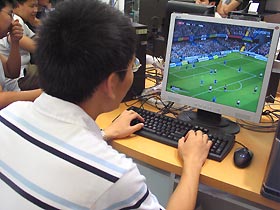 man is playing a Net game at an Internet Coffee in Shanghai, July 21,