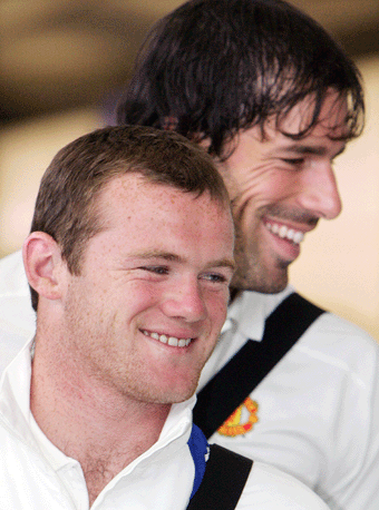 League Manchester United players Wayne Rooney (L) and Ruud van