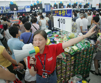 newly-opened Wal-Mart store in the Pudong New Area of Shanghai July 28,