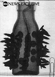 Chilling black and white X-ray photographs of the bomb were plastered across
