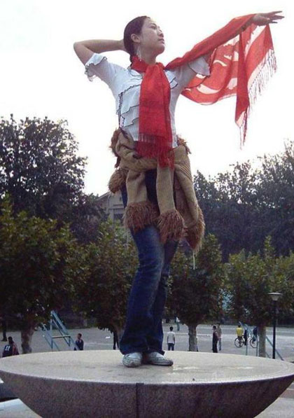 Students interviewed at the universities that turned Sister Lotus down took a similar attitude, saying they and almost everybody on campus were part of the craze but did not take it seriously. Zhou Min, 25, a PhD student at Tsinghua, said one of his classmates got so excited when he bumped into Sister Lotus in a hallway recently that he missed an evening seminar. A Peking University graduate student, Ye Shulan, 27, said it was all for fun. "I think you can just be entertained and laugh her off," he said. For some commentators, Sister Lotus has grabbed the imagination of young Chinese because she is affirming her individuality so blatantly in a society where children are generally taught to conform and avoid sticking out. Others expressed concern that, despite the economic boom, life in China must be lacking something if Sister Lotus can so grip the attention of young people.
