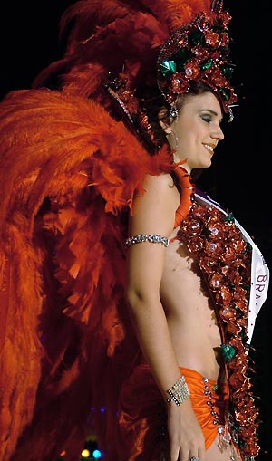 Miss Bikini World contestant from Brazil displays national costume at the 2005 competition held in Beihai, Southwest China's Guangxi Zhuang Autonomous Region, July 28, 2005. The winner will be decided on July 30, 2005. [Xinhua]