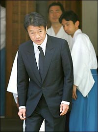 The lawmaker, known for hawkish remarks, had earlier hinted he may go to the controversial shrine on the 60th anniversary, saying he regarded it as a way to to "wish for peace and pledge never to wage war". At least two cabinet ministers have said they will visit Yasukuni on Monday. But a close aide to Prime Minister Junichiro Koizumi said Sunday he would not visit the shrine on the anniversary. "With tacit understanding as a long-time friend ... I think the prime minister will not go on August 15," ruling-party lawmaker Taku Yamasaki told the private Asahi network. But when asked if Koizumi will drop his annual visit to Yasukuni this year, Yamasaki said he was "a bit doubtful". Koizumi has made four controversial pilgrimages to the shrine in central Tokyo while in office but he has avoided sensitive dates such as August 15, the day Emperor Hirohito surrendered in 1945. The Yasukuni shrine honors 2.5 million Japanese war dead including 14 top or Class-A convicted war criminals. Koizumi hinted Friday he would stay away from the shrine, saying his opinion that he would not go to Yasukuni on or around August 15 so as not to upset people at home or abroad "hasn't changed."