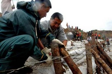 Flood control in Shenyang (newsphoto) Updated: 2005-08-18 09:46