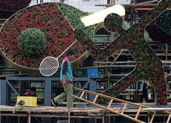 flower decorations set up to publicise the Beijing 2008 Olympic Games as