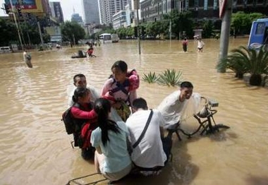 ![]() Chinese make their way in the flooded city centre of Fuzhou in Fujian province, eastern China October 3, 2005 after it was hit by Typhoon Longwang. Typhoon Longwang reached China on Sunday. As the storm approached, more than 200,000 people were evacuated from boats to land in Fujian, state media said. [Reuters] ![]() Chinese make their way in the flooded city centre of Fuzhou in Fujian province, eastern China October 3, 2005 after it was hit by Typhoon Longwang.[Reuters] |