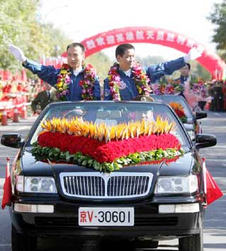 Astronauts Fei Junlong (L) and Nie Haisheng