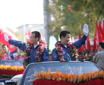 Astronauts Fei Junlong (L) and Nie Haisheng