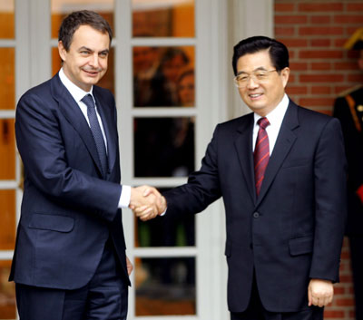 at Moncloa Palace in Madrid, November 14, 2005. Hu arrived in Spain on